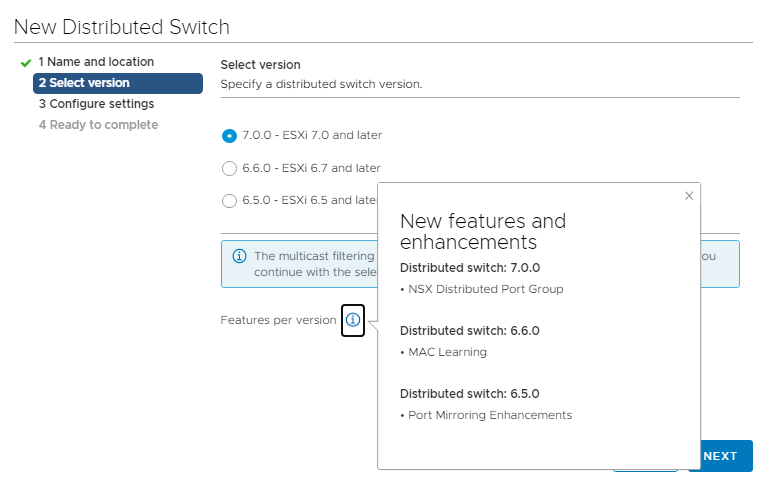 The VDS has been updated throughout the history of vSphere, and comes back in this list as the vSphere 7.0 VDS.