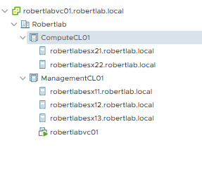 I’m starting with 3 hosts in a management cluster , and 2 hosts for compute resources. For now I’ve not deployed any KVM hosts (yet).