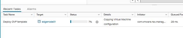 Click ‘finish’ and we can see the Edge Node VM being deployed in vCenter!