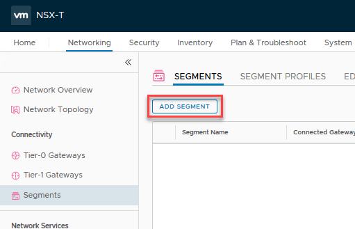 Go to ‘Networking’ – ‘Segments’ and click ‘ADD SEGMENT’.