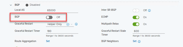 This is a simple lab, no need for dynamic routing. So I’m going to disable BGP in the respective section. BGP configuration deserves its own blogpost, maybe in the future! I’ll be sure to update this post when I get around to that.